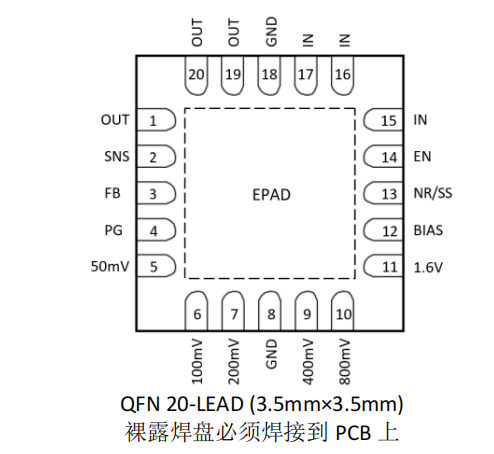 –管脚调节工作电压范围:0.8V 至 3.95V